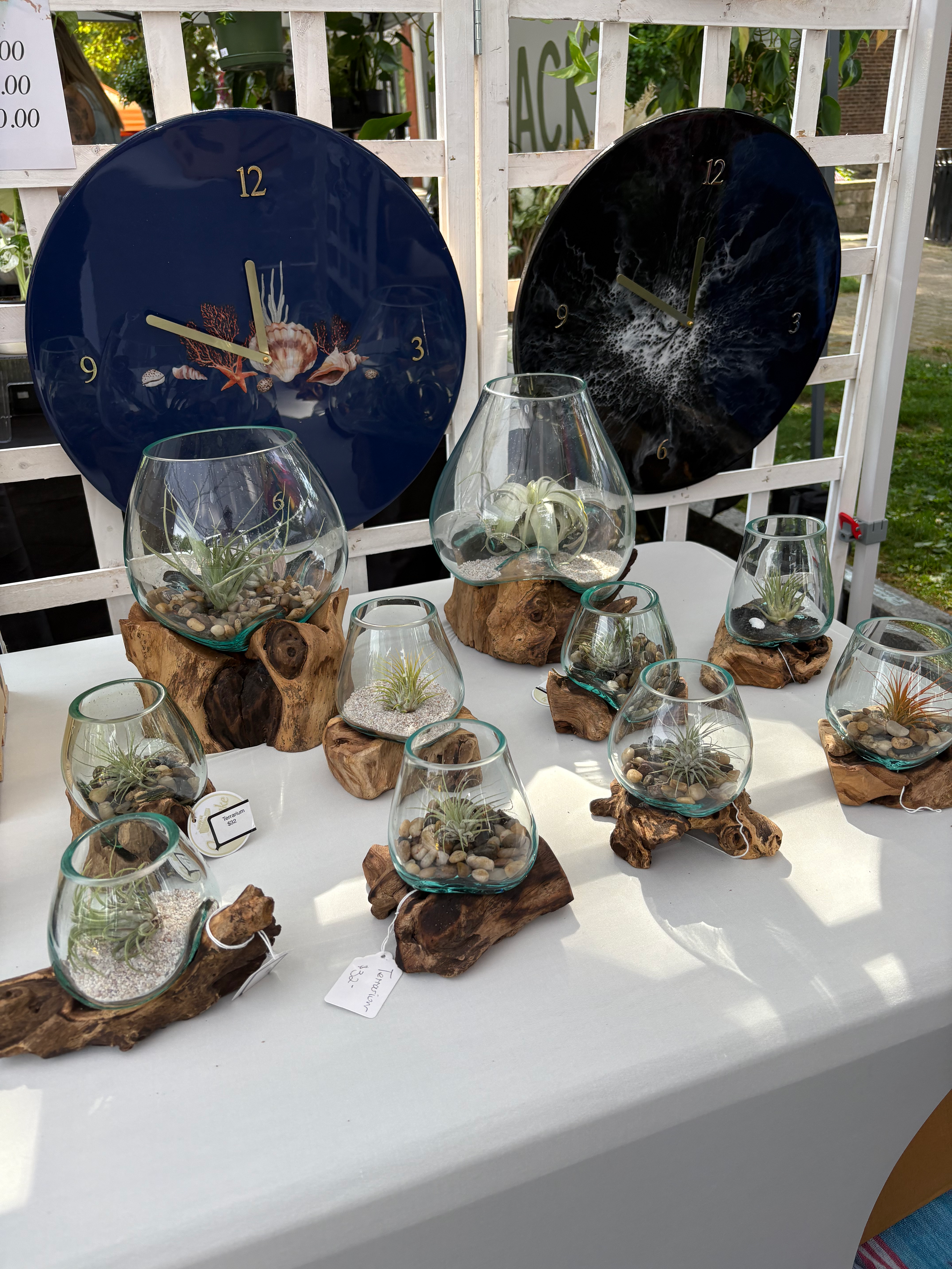 Working with resin, wood, glass, and botanicals, Noreen designs trays, wall art, and planters that bring the calm beauty of nature indoors. Each piece is layered with texture, color, and light — capturing moments that remind us to slow down and appreciate simple things.